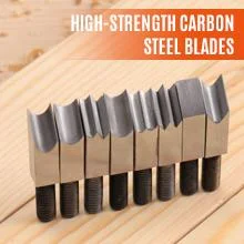 - 2 sets(1*Saker Chamfer Plane+6*Cutter Head):2*Saker Woodworking Planer + 2*1/4 Round cutter head + 2*45° Flat blade + 2*3/16 Round cutter head + 2*1/8 Round cutter head + 2*Double round cutter head + 2*Sharp-corner cutter head+1*round-corner cutter head + 2*Double-pointed cutter head